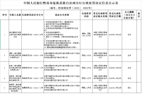 11月26日金融一线消息,中国人民银行黔南布依族苗族自治州分行行政处罚决定信息公示表显示,贵州福泉农村商业银行股份有限公司因存在10项违法违规行为:被警告并处以罚款140.18万元。罚单涉及违法行为类型如下:1.未按规定报送账户开立、撤销等资料;2.违反特约商户资金结算管理规定;3.相关人员不具备反假专业能力;4.在用现金机具鉴别能力不符合国家和行业标准;5.未按规定收缴假币;6.占压财政存款或者资金;7.提供个人不良信息场外配资网站,未事先告知信息主体本人;8.未按规定履行客户身份识别义务;9.未采取防范计算机病毒和网络攻击、网络侵入等危害网络安全行为的技术措施;10.提供虚假的或隐瞒重要事实的统计资料。